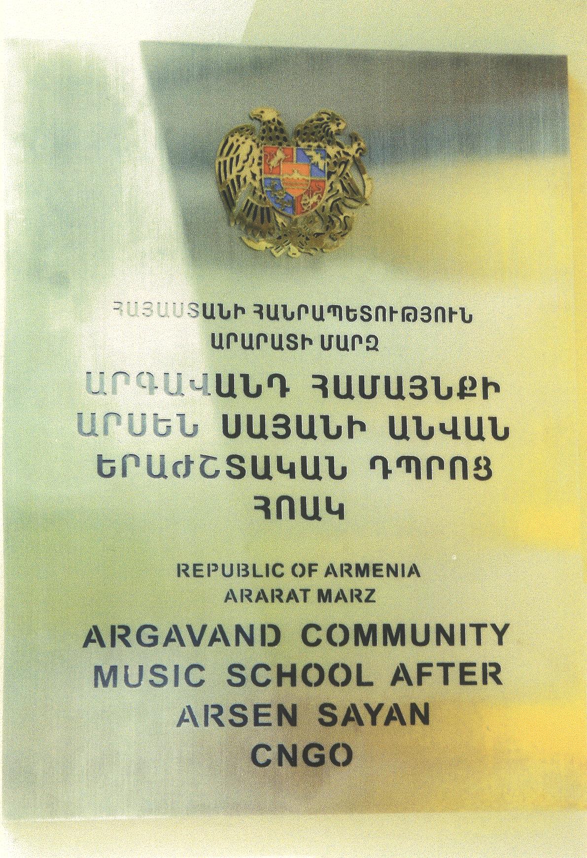 Սեպտեմբեր 26, 2014ին, պաշտօնապէս բացուեց Արգաւանդի ամբողջութեամբ վերանորոգուած, Մաէսթրօ Արսէն Սայեանի անունը կրող երաժշտական դպրոցը: Աւելի քան վեց ամիս տեւած վերանորոգման աշխատանքներից յետոյ, որ Հայ Օգնութեան Ֆոնտը (Հ.Օ.Ֆ.) իրականացրել է՝ հանրահռչակ հայ երաժշտագէտխմբավար, մանկավարժ, հասարակական գործիչ՝ Արսէն Սայեանի նուիրատուութեամբ: